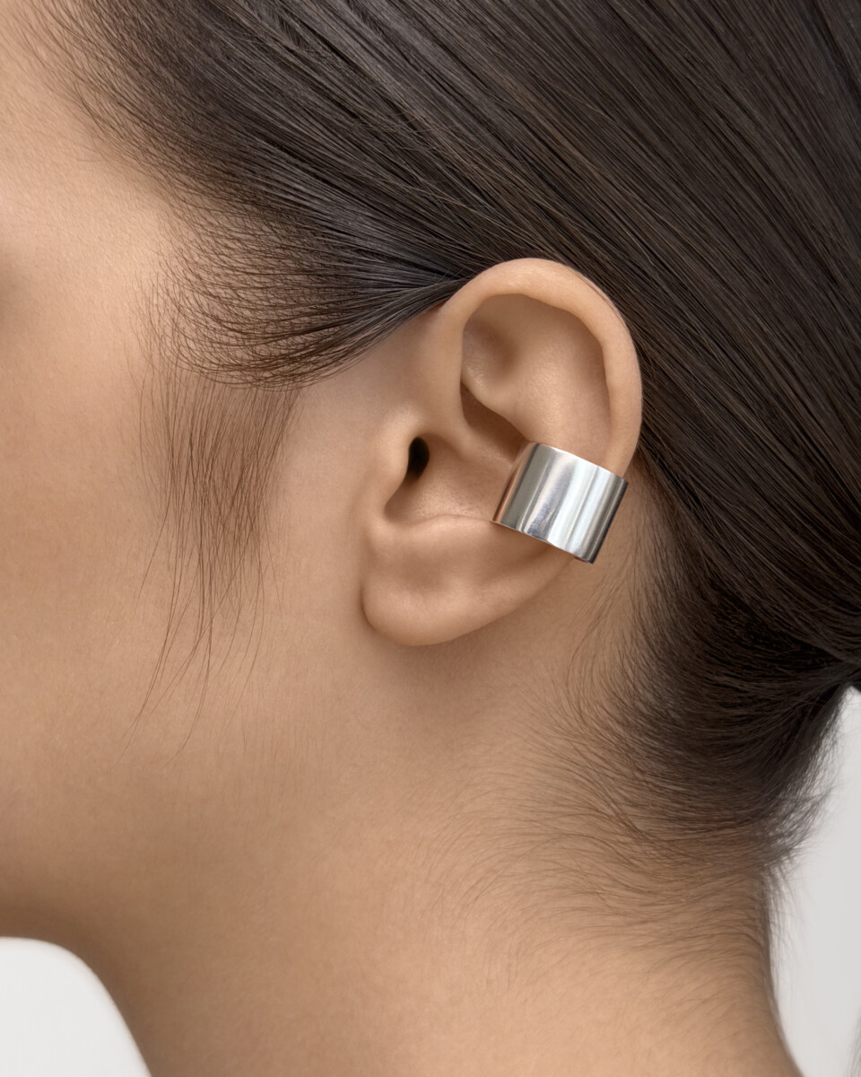 Універсальний широкий срібний каф який можна носити як у вигляді прикраси на вухо, так і у вигляді фалангової каблучки.